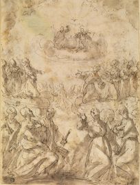 Eccezionale esempio disegnativo di mano di Girolamo Gambarato: stringenti sono i confronti con il disegno a penna raffigurante il Giudizio Universale conservato presso Fitzwilliam Museum (inv. 3066), precedentemente attribuito a Palma il Giovane e con un altro, transitato a Londra presso Christie's (07/07/1992, lotto 145), che date le evidenti similarità compositive e iconografiche, si direbbe uno studio più avanzato di progettazione della scena qui offerta.