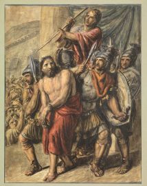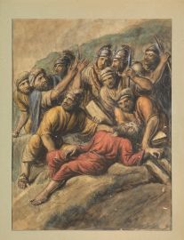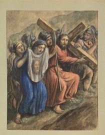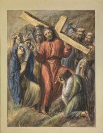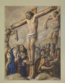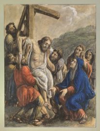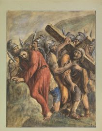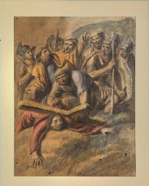 Proveniente da una cappellina sconsacrata a Marcialla secondo la testimonianza di Gian Lorenzo Mellini a cui si deve il merito della riscoperta moderna di Luigi Ademollo da lui definito pittore atipico, eccentrico e stravagante, la serie presentata va collocata intorno al 1840, nella tarda attività dell’artista. Parte della collezione dello stesso Mellini, veniva da questi assai efficacemente descritta con queste parole: “gridata e quasi plebea, si legge il revival di certo antico spasimo espressivistico, dalla Scuola del Danubio fino a Grünewald, estrema traccia del suo internazionalismo mentale” (Mellini 1974, p. 326).