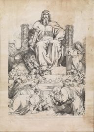 firmate in basso a destra "Luigi Sabatelli inven. ed inc. in Milano" e testo in due righe con citazione da libro dell'Apocalisse (cap. XIV; XVII; CIV; CVI; CX)