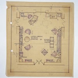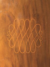 con struttura in legno intarsiata, puntali in ottone e rivestimento in tessuto