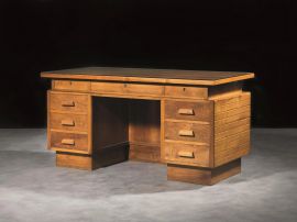 A DESK, WOODEN STRUCTURE, GLASS TOP