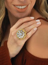 ANELLO A FORMA DI FIORE CON DIAMANTI E ZAFFIRI GIALLI