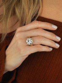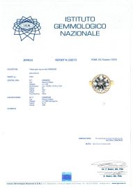 in oro giallo 18kt, al centro un diamante taglio brillante di ct 7.33, colore M, purezza Vs1, circondato da diamanti taglio brillante per ct 0.50 circa, mis. 13, gr. 9. Corredato di certificato IGN del 20/10/2020 attestante le caratteristiche.