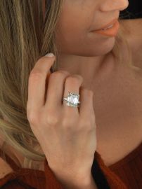 in platino, taglio ottagonale di ct 14.59, colore M, purezza SI1, diamanti taglio tapes per ct 0.80 circa, colore F/G, purezza IF/Vvs. Corredato di certificato IGN del 24/09/2020 attestante le caratteristiche.