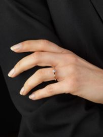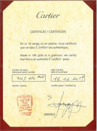 in oro rosa 18kt, diamante taglio brillante di ct 0.25, colore E, purezza Vvs2, firmato "Cartier, punzoni 750, del fabbricante e n. seriale, mis. 15, gr. 3. Corredato di scatola, garanzia e certificato GIA del 24/04/2019 attestante le caratteristiche.