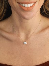 in oro giallo 18kt, diamante taglio ovale di ct 3.46, colore D, purezza Vvs2, lungh. cm 39,5, gr. 3. Corredata di certificato GIA del 31/10/2019 attestante le caratteristiche del diamante.