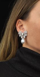 PAIO DI ORECCHINI A FIOCCO CON PERLE E DIAMANTI