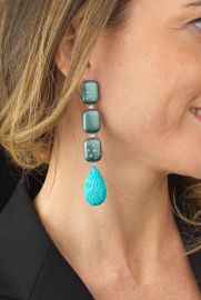 SUZANNE SYZ LONG TURQUOISE AND DIAMOND EARRINGS IN TITANIUM