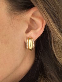in oro giallo 18kt, con al centro un elemento in corallo rosa che può essere sostituito con uno analogo in oro giallo 18kt, diamanti taglio brillante per ct 0.90 circa, firmati "VCA", punzone 750 e n. seriale, dim. cm 1x2 circa, chiusura a clip, gr. 26 complessivi