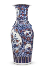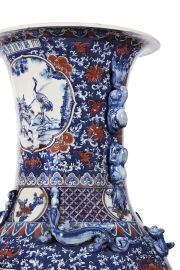 in porcellana bianco blu decorato con volatili entro riserva, fiori e pipistrello in rosso ferro; alt. cm 118,5