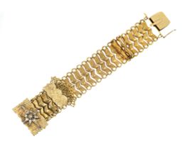 in oro giallo 18kt, diamanti taglio vecchio per ct 0.25 circa, lungh. 20 cm, gr 84
