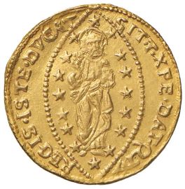 VENEZIA. FRANCESCO ERIZZO (1631-1646) ZECCHINOAu gr. 3,48 D/ S. Marco porge il vessillo al Doge genuflesso R/ Il Redentore, circondato da stelle, entro aureola ellittica Mont. 1500 Paol. 1