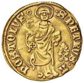 Au gr. 3,42 D/ S. Pietro stante con triregno e chiavi papali R/ Leone vessillifero con simbolo di zecca (Benedetto del Montone) Chim. 148 CNI (anonime pont.) 4 Munt. 28