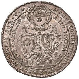 Ar gr. 9,85 D/ Stemmi del Doge, Podestà e Camerlengo; sotto tra bassorilievi Gallo R/ Stemmi dei quattro Deputati; sopra data Mont. 3033 (questo es.) Paol. 590
