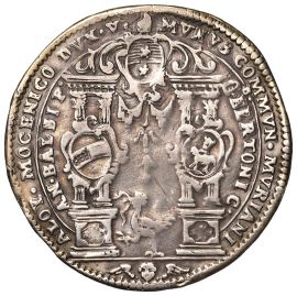 Ar gr. 9,25 D/ Stemmi del Doge, Podestà e Camerlengo; sotto Gallo tra bassorilievi R/ Stemmi dei quattro Deputati; sopra data Mont. 3028 Paol. 585