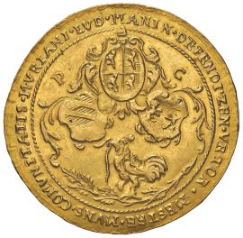 Au gr. 13,81 D/ Stemmi del Doge, Podestà e Camerlengo; sotto Gallo R/ Stemmi dei quattro Deputati; sotto data Mont. 3424 (questo es.) Paol. 687