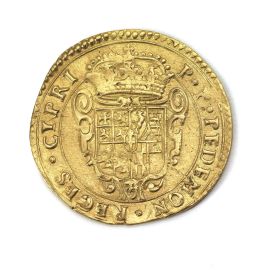 Au gr. 13,24 D/ Busti accollati a d. R/ Scudo coronato inquartato e ornato di volute MIR 739a Fried. 1071