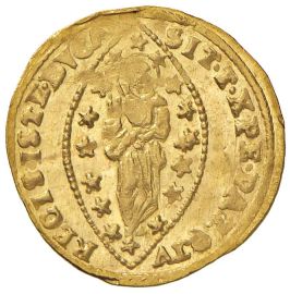 Au gr. 3,49 D/ S. Marco porge il vessillo al Doge genuflesso R/ Il Redentore, circondato da stelle, entro aureola ellittica Mont. 3320 Paol. 14