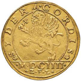 Au gr. 17,26 D/ S. Marco consegna il vessillo al Doge genuflesso ; es. ANNO X R/ Leone di S. Marco regge una croce; es. MDCIIII ZFL (Zan Francesco Loredan) Mont. - Paol. -