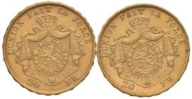 BELGIO. DUE MONETE D’ORO DA 20 FRANCHI