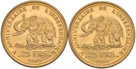 CONGO. DUE MONETE D’ORO DA 25 FRANCHI 1965