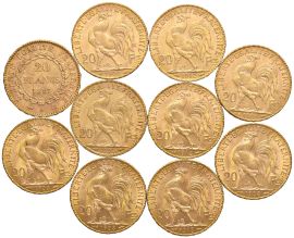 FRANCIA. DIECI MONETE D’ORO DA 20 FRANCHI