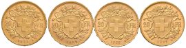 SVIZZERA. QUATTRO MONETE DA 20 FRANCHI