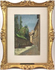 on the reverse: inscribed "La Via dei Bardi / di Odoardo / Borrani / Collezione / Mario Galli", stamp of Galleria d'Arte Spinetti, of Galleria d'Arte Bertini and of the Collezione Mario Galli
