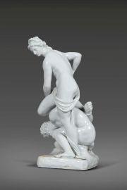 in porcellana bianca raffigura raffigurante la Virtù che trionfa sul Vizio. Il modello di questo gruppo, ricavato dal marmo del Giambologna conservato a Palazzo Vecchio, fu riportato in bronzo da Massimiliano Soldani Benzi, ed è citato nell'Inventario dè Modelli della fabbrica toscana, al numero 31 dell'inventario delle forme della manifattura. Al museo di Doccia esiste la cera (inv. 1043) e una versione in porcellana; cm 26,2x15x14,5