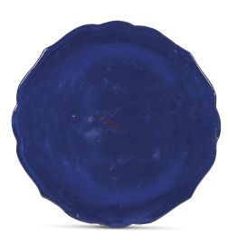 in maiolica di forma sagomata, orlo mistilineo e stretta balza con bordo centinato, privo di piede d’appoggio. Il piatto, totalmente smaltato di blu al retro, sul fronte prevede come ornato quattro riserve orlate di rosso ferro entro le quali a policromia sono delineati personaggi tratti dalle incisioni di Jacques Callot, uniti a animali, uccelli e insetti collocati in paesaggi incorniciati da piccoli alberelli. Un piatto molto prossimo è presente nella collezione Gianetti a Saronno. Sul retro iscrizione Milano delineata in rosso