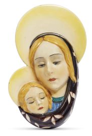 Si unisce rilievo in terracotta modellata a colaggio e dipinta in policromia raffigurante Madonna col Bambino; cm 25x15,5x5,5