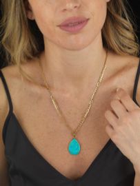 COLLANA A CATENA CON PENDENTE A GOCCIA IN TURCHESE INCISO
