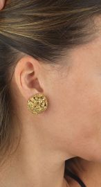 in oro giallo 18kt con decorazione a traforo, punzone 18kt, diam. cm 2,5, chiusura a clip, gr. 22 complessivi