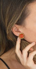 PAIO DI ORECCHINI A FORMA DI GIRASOLI CON CORALLO