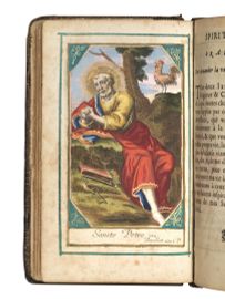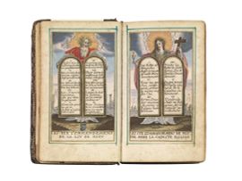 DELICIOUS FRENCH 17TH CENTURY BOOK OF PRAYERS, with all the plates in fine contemporary hand-colouring and in beautiful contemporary “en-pointillé” binding (original central fleuron excised). Detailed description and additional images upon request.