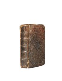 In 12-mo (134 x 84 mm). [xvi] 276, 360 [8] pp. Testo rubricato. 15 tavole calcografiche in fine coloritura coeva. Testatine, iniziali e finalini xilografici. Vitellino coevo con piatti e dorso interamente decorati “en pointillé”, dentelle dorata, contropiatti marmorizzati, tracce di fermagli. La legatura è sciupata alle estremità e la decorazione al centro dei piatti sembra essere stata sostituita; antico restauro al verso dell’antiporta, che, insieme al frontespizio inciso, mostra tracce d’uso; tavola di Santa Maria Maddalena con strappo restaurato, ma che interessa per lo più il margine inferiore. Nel complesso buona copia genuina.
