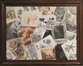 collage of prints, various subjects and ages, 94x123 cm; 115x143 cm (with frame)