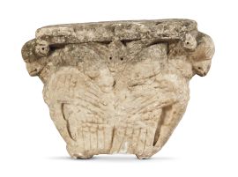 in marmo scolpito a motivo di due grifi posti di profilo in posizione contrapposta, cm 36x53x13