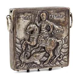 argento sbalzato, una con San Giorgio e San Girolamo, cm 5,6x5,7, l’altra con San Giorgio e i Simboli della Passione, cm 7,5x8,3