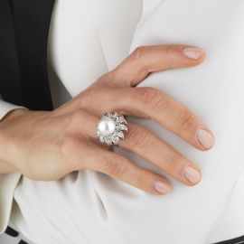 ANELLO A FORMA DI FIORE CON PERLA SOUTH SEA E DIAMANTI