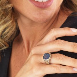 ANELLO SIGILLO NOBILIARE CON ZAFFIRO