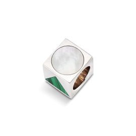 in argento con intarsi in malachite e madreperla, firmato "J.Rivière Unico 2015", mis. 13, gr. 42. Corredato di scatola.