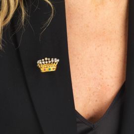 SPILLA "CORONA" CON PIETRE DI COLORE E PERLE