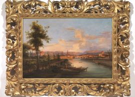 Questa bella veduta di Firenze dall’Arno di Giovanni Signorini viene posta in asta grazie alla generosità di un anonimo venditore e il ricavato della vendita sarà devoluto a favore della Fondazione Italiana di Leniterapia (FILE).