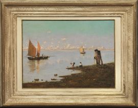 L'opera può essere collegata a una serie di vedute che l'artista eseguì dello stesso tratto di costa e che si differenziano per piccole variazioni nello sfondo e nei personaggi sulla spiaggia (si veda N. Stringa, Guglielmo Ciardi, catalogo generale dei dipinti, Crocetta del Montello 2007, pp. 208-209).
