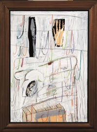 In questo scenario Paladino lavora sempre sul piano della pelle della pittura, della sua superficie, a metà tra astrazione e figurazione. Le sue immagini evanescenti, a colori pastello, sembrano prendere vita davanti allo spettatore. Come afferma lui stesso “Lo sconfinamento è una dimensione che mi appartiene da sempre”. Così la lingua pittorica di Paladino è volutamente nomadica, ricca di echi che gli consentono di viaggiare nei territori più disparati; dalla pittura primitiva, alle avanguardie del primo Novecento, alla cultura popolare e quella colta. Le figure popolano costantemente i lavori dell’artista, elementi misteriosi che sembrano risiedere in un limbo intermedio tra intorpidimento e divenire: per metà fossili e per metà esseri viventi, vivi.