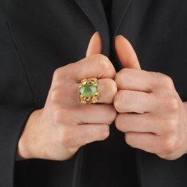 GREEN QUARTZ 18KT YELLOW GOLD RING IN FLOWERING BRANCHES