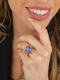 SYNTHETIC STONE AND CUBIC ZIRCONIA RING IN SILVER AND GOLD