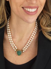 COLLANA DI PERLE CON NEFRITE E DIAMANTI