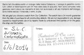 dedicato agli incursori della regia marina militare italiana, cassa in acciaio, fondello a vite, lunetta girevole in ceramica, quadrante di colore nero, indici stampati, datario a ore 3, movimento a carica automatica cal ETA 7750, bracciale in acciaio tipo "flip lock", vetro minerale. Corredato di scatola e garanzia. Diam mm 43, lungh. interna bracciale cm 20